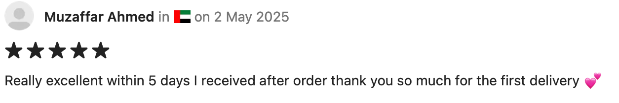 We process order within 24-72 hours and deliver them within 6-15 days depending on our location with tracked shipment included for your convenience.